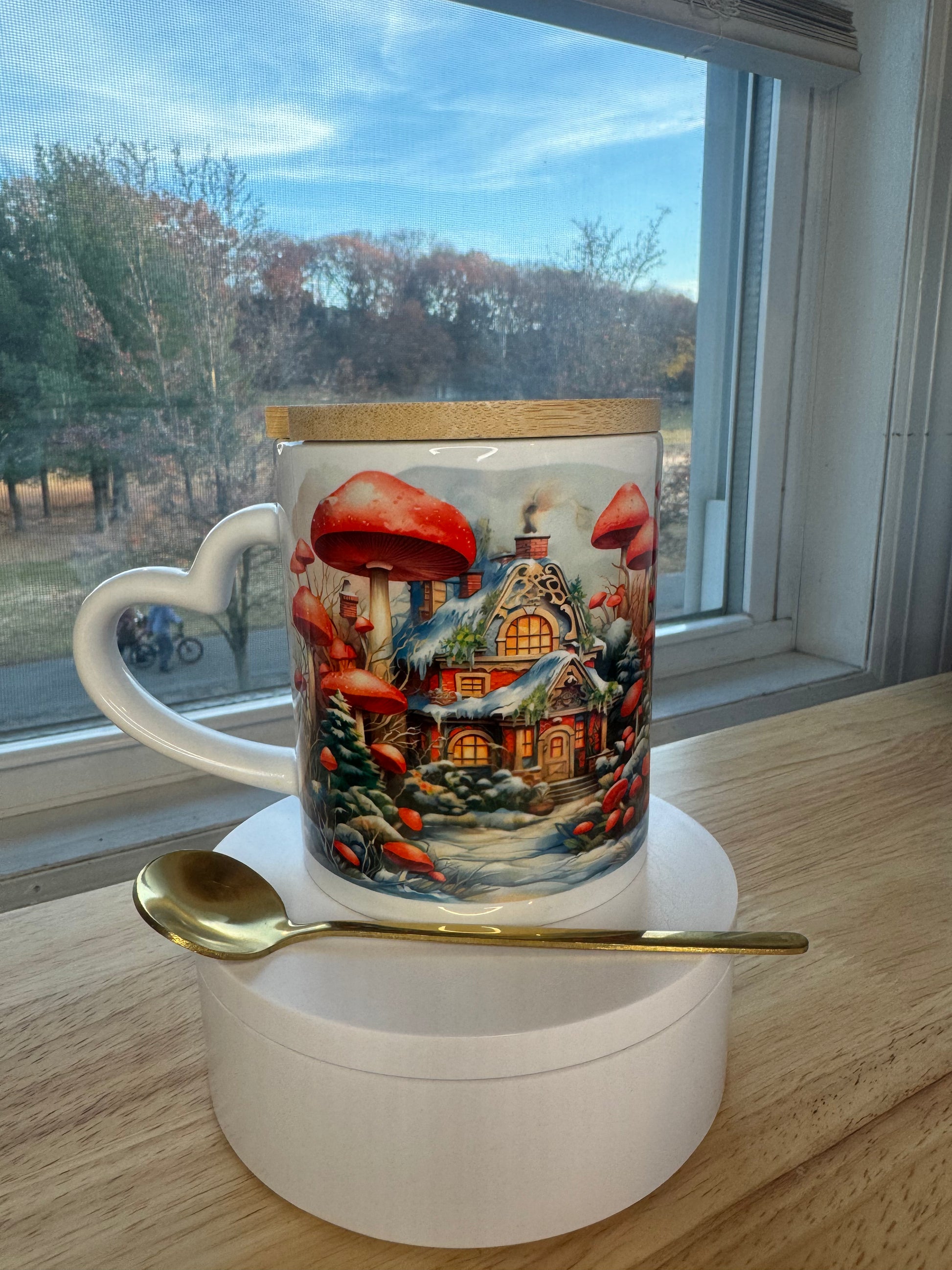 Christmas mug with lid and spoon, heart handle Sublimation mug