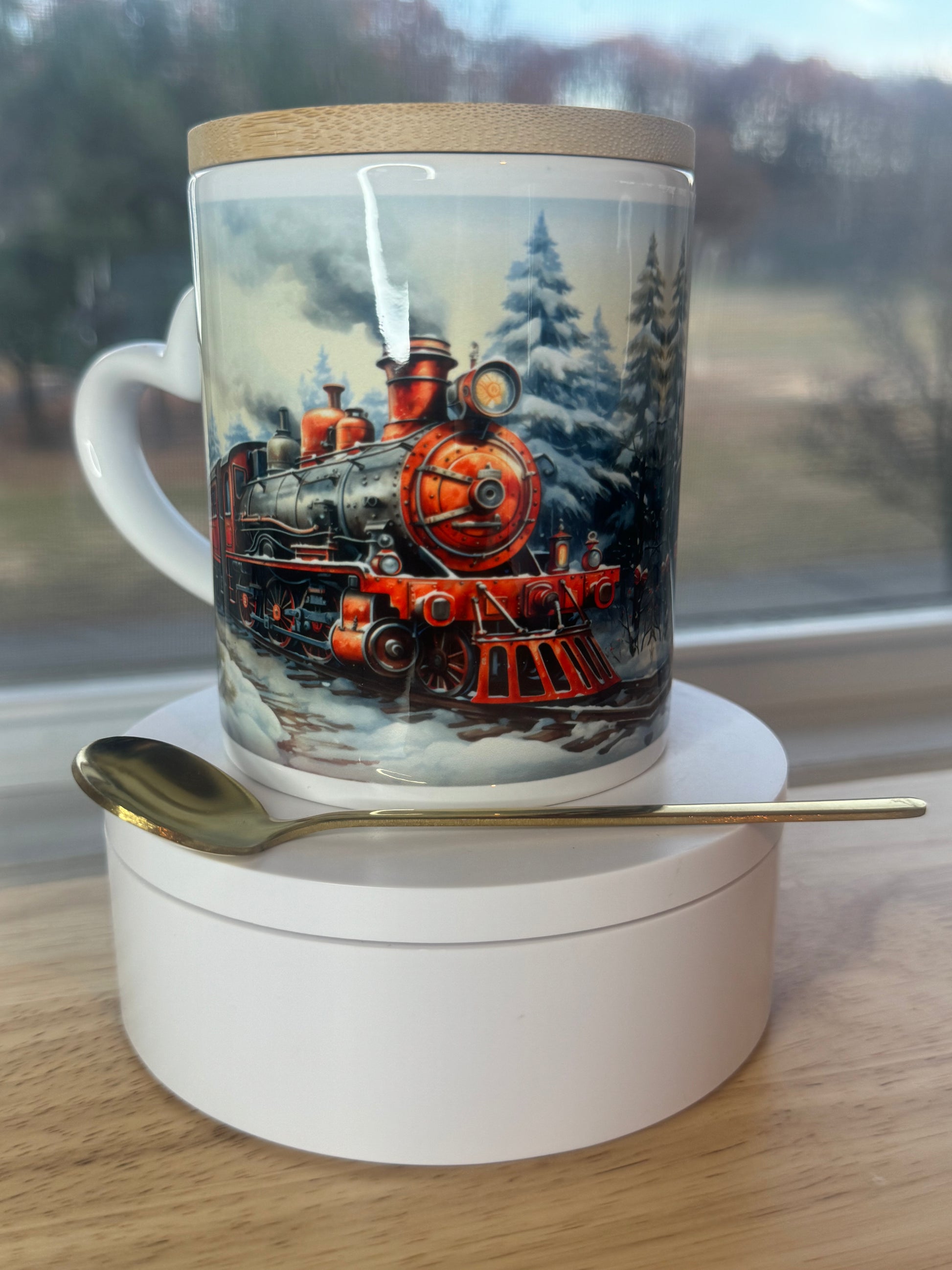 Christmas mug with lid and spoon, heart handle Sublimation mug