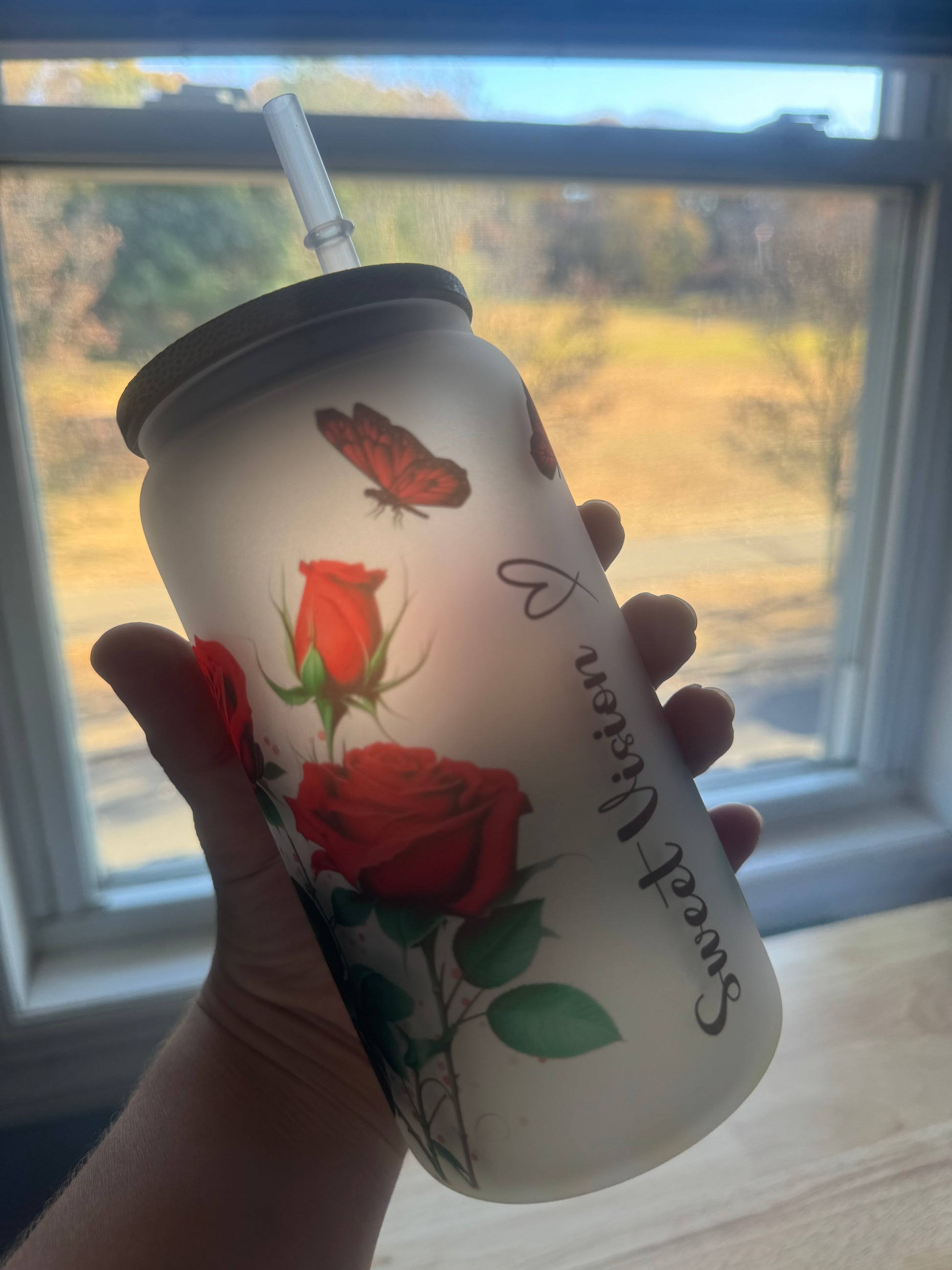 Custom name Gift box, sublimation frosted glass cup 16oz, red roses. Just for you