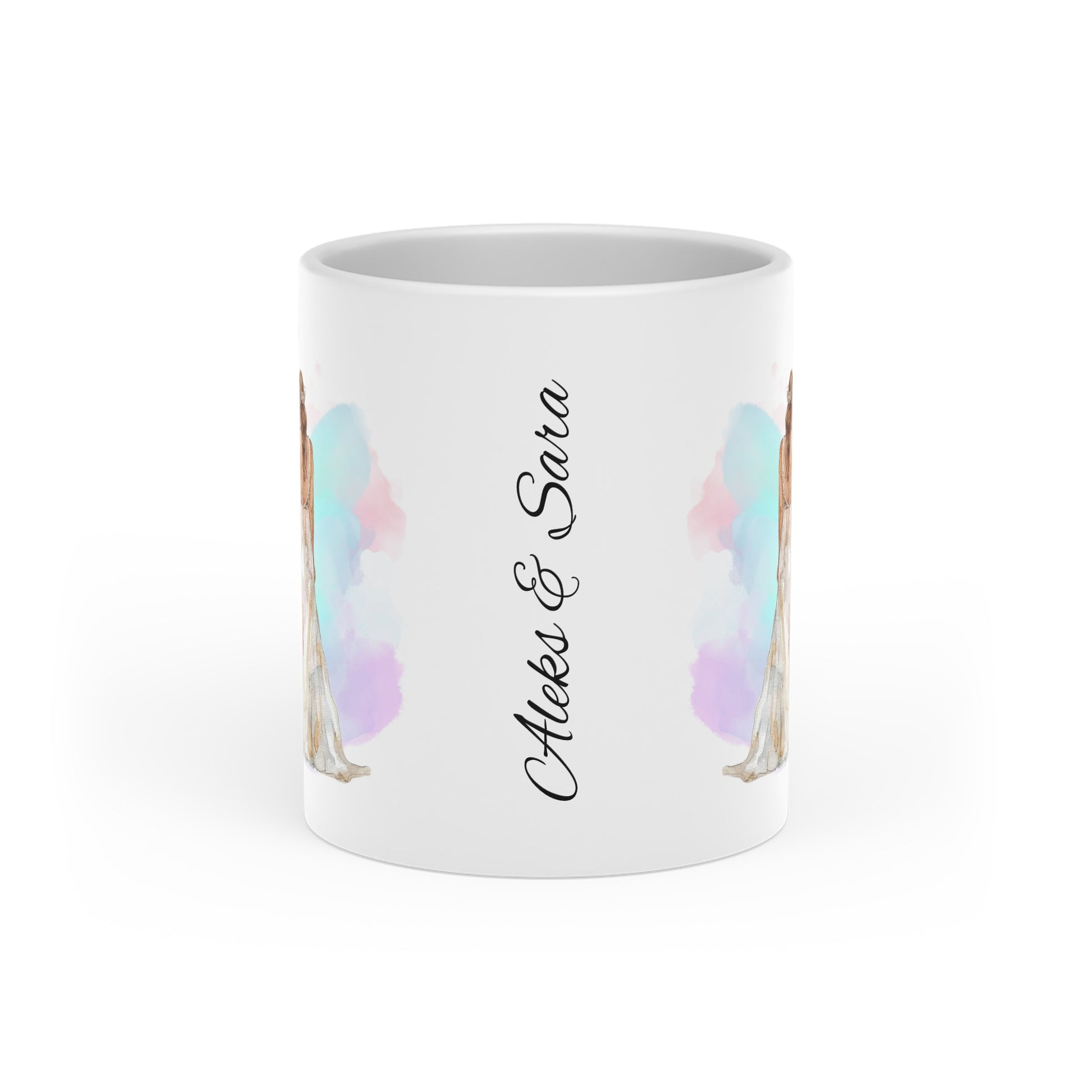 This Couples Wedding mug features a sublimation design, complete with a lid and spoon for added convenience. The unique heart-shaped handle adds a touch of romance to your morning routine. Perfect for any couple, this mug makes for a thoughtful and practical wedding gift, Christmas gift or birthday gift