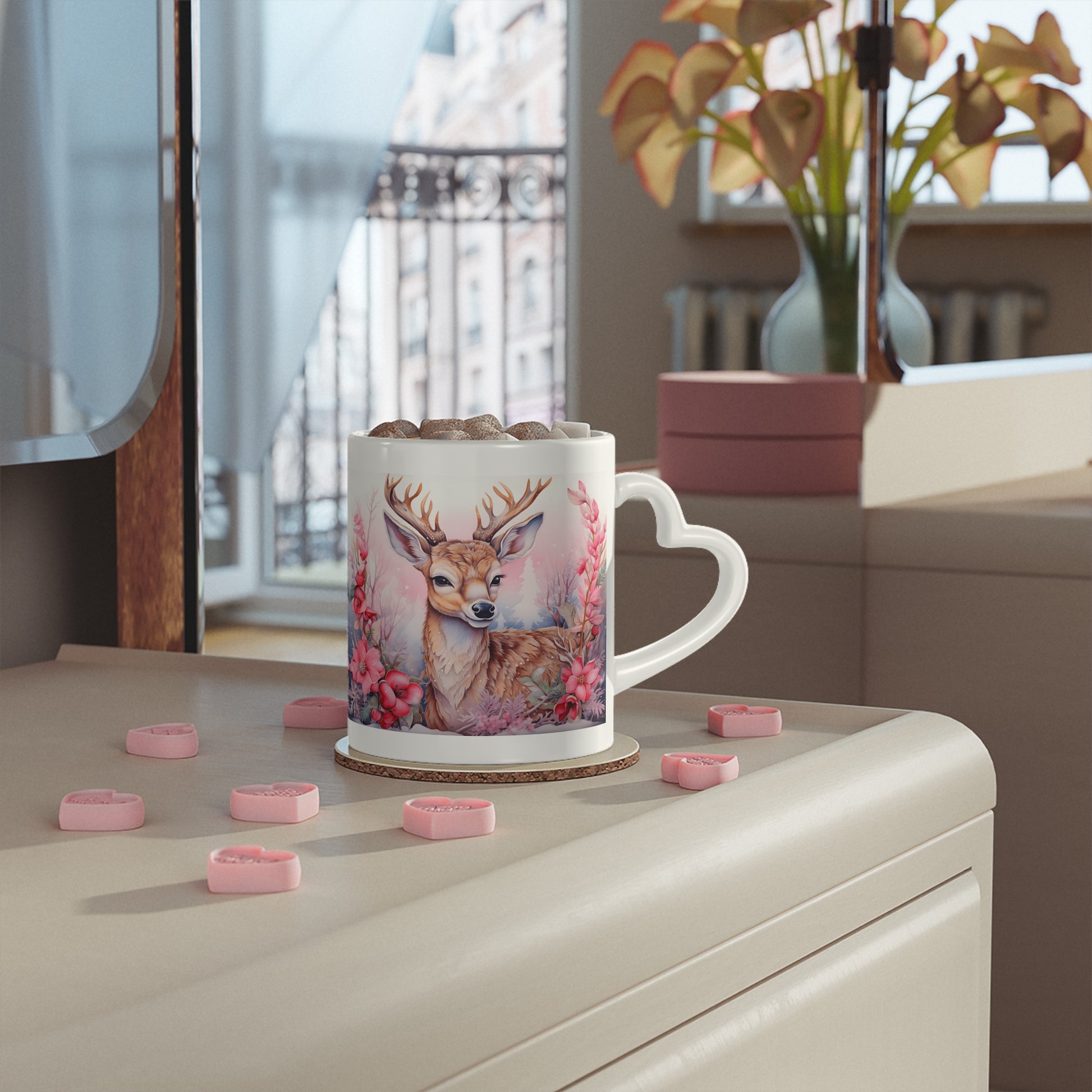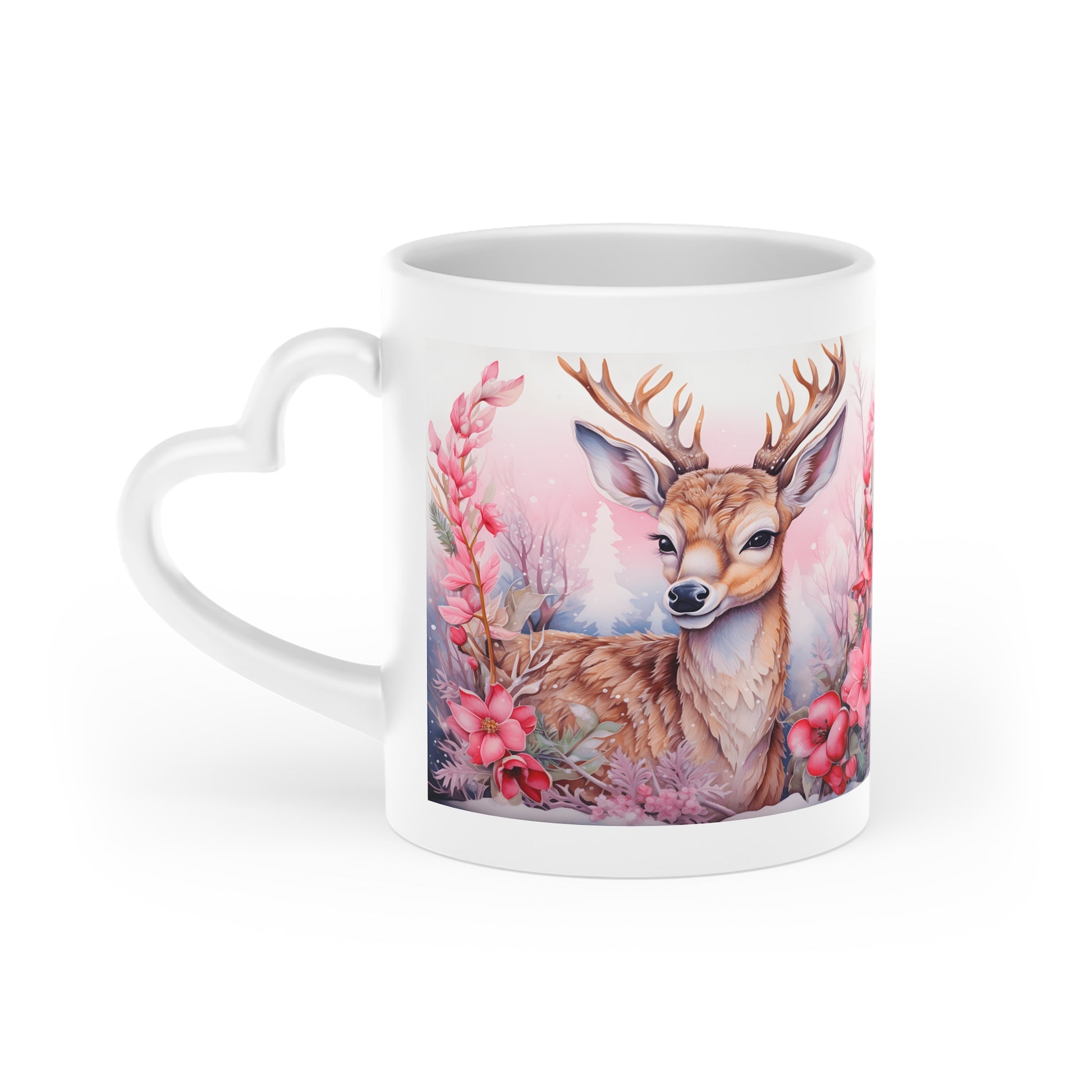 Sublimation mug with lid and spoon, heart handle, Christmas gift.
